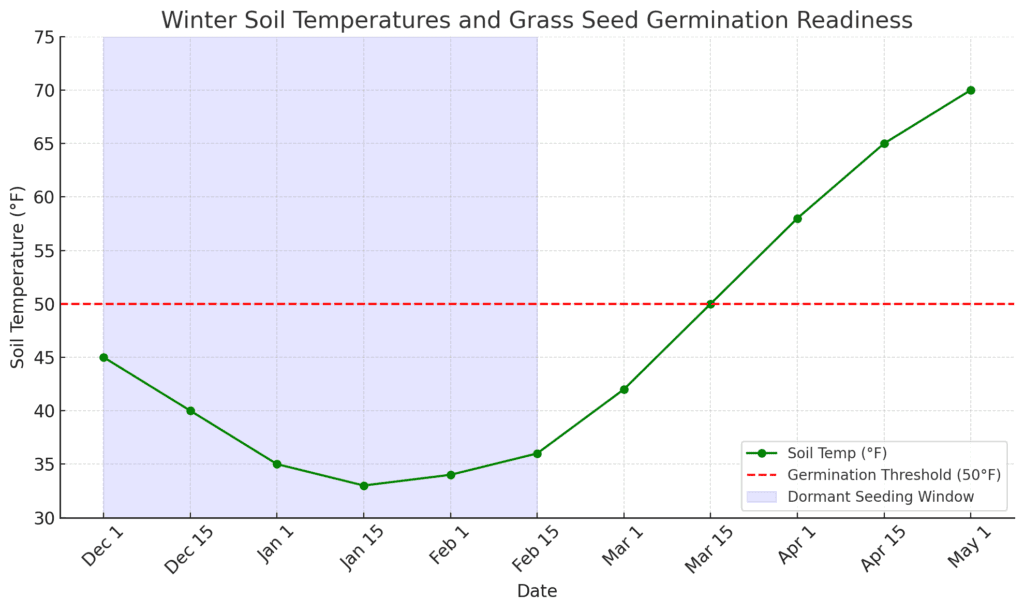 This method, known as dormant seeding, doesn’t rely on the seed growing right away. Instead, it sits tight in the soil and waits for the right conditions in spring. When that soil hits the right temperature? Boom, it takes off faster than seed planted later in April.