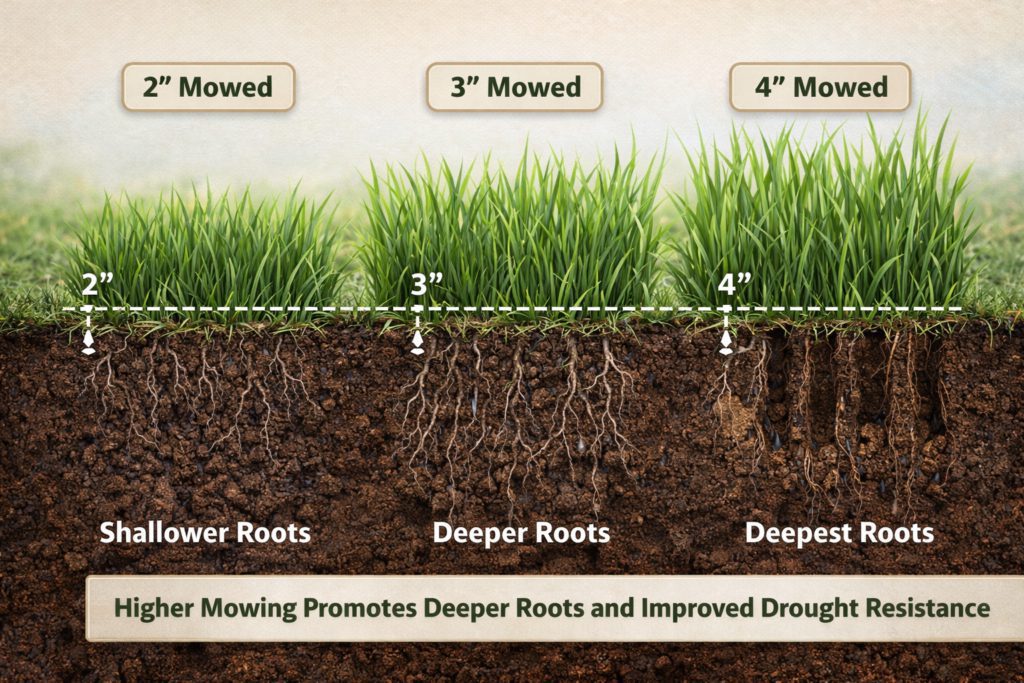 - If you don’t irrigate: Avoid midsummer fertilizer and raise mowing height early.