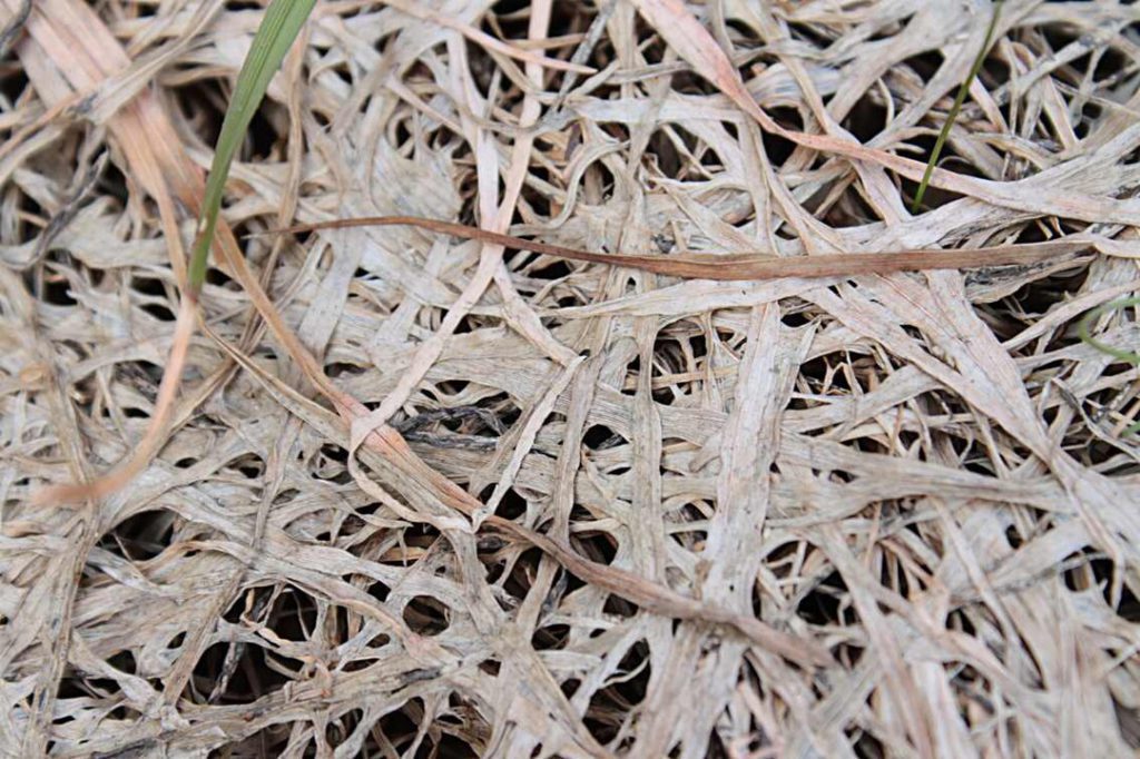 You’ll usually spot the damage in circular patches once the snow melts. The grass looks bleached or tan, often stuck flat to the ground. Sometimes it even has a fuzzy or web-like coating.