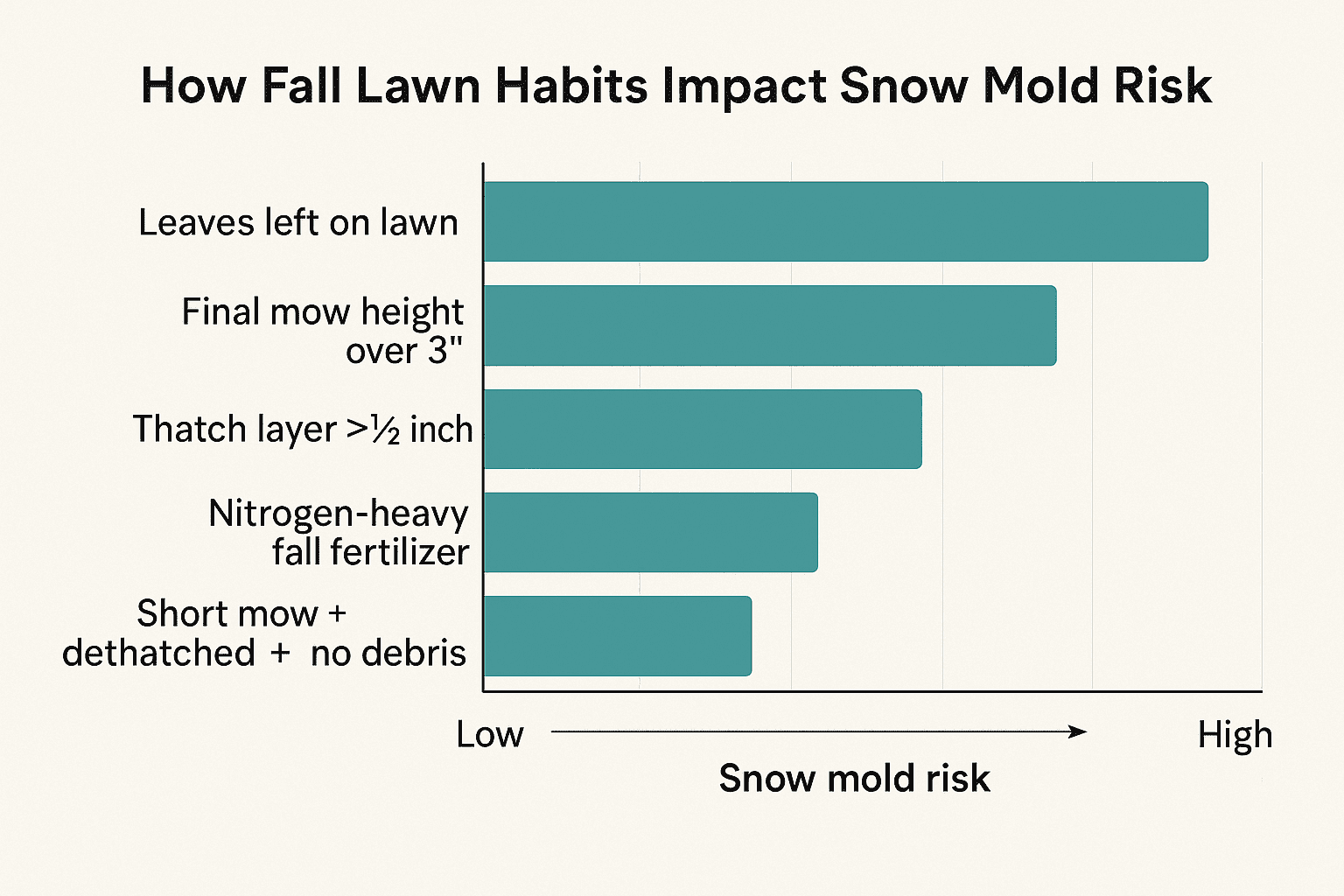 According to UMass Amherst Turf Program, lawns with more than half an inch of thatch see much higher snow mold activity because that organic layer locks in moisture beneath snow cover.